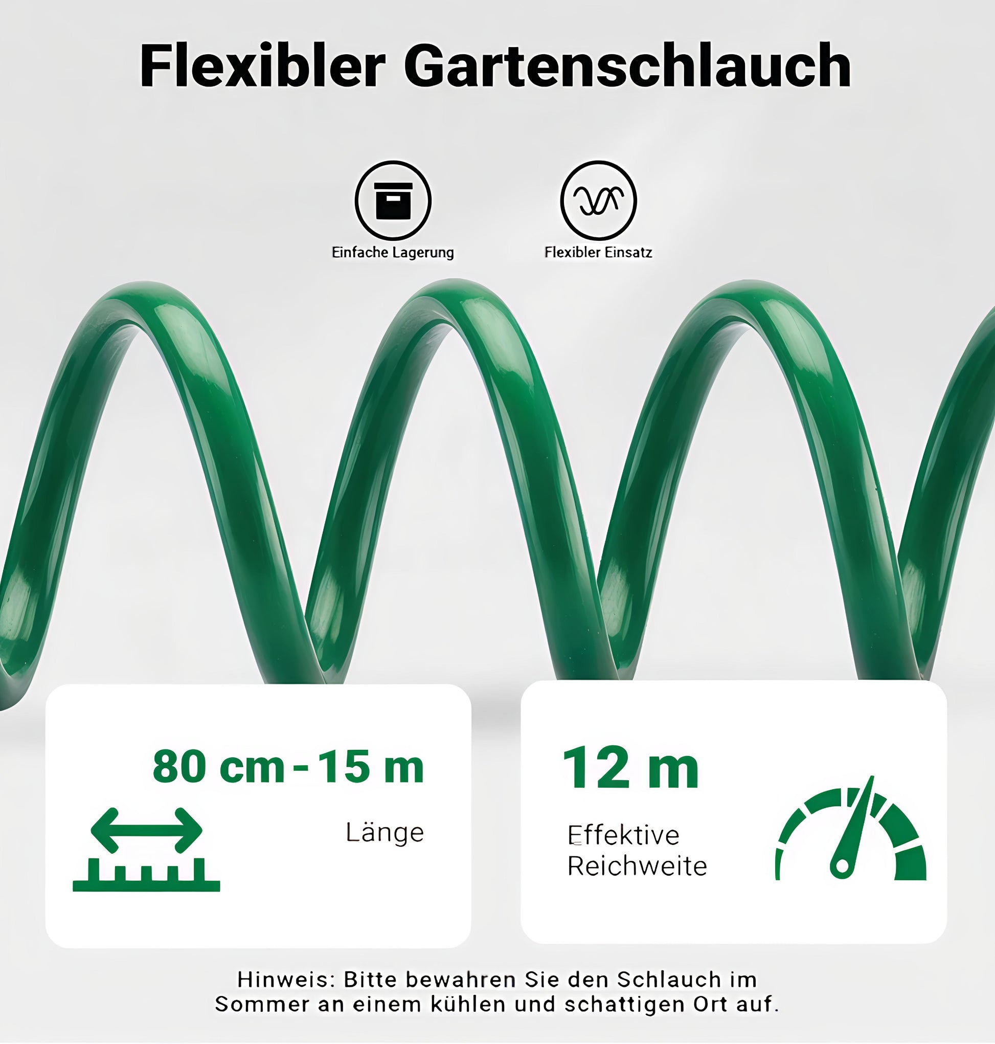 احصل على تجربة ري سهلة ومنظمة مع الخرطوم الحلزوني بطول 15متر تصميمه الملتف الذاتي يجعل تخزينه بسيطًا ويوفر مساحة كبيرة في الحديقة أو الشرفة. يأتي مع رشاش قابل للتعديل بعدة أوضاع للرش تناسب جميع احتياجاتك — سواء لري النباتات، أو تنظيف السيارة، أو غسل الأرضيات. مصنوع من مواد قوية مقاومة للعوامل الجوية لضمان الاستخدام الطويل