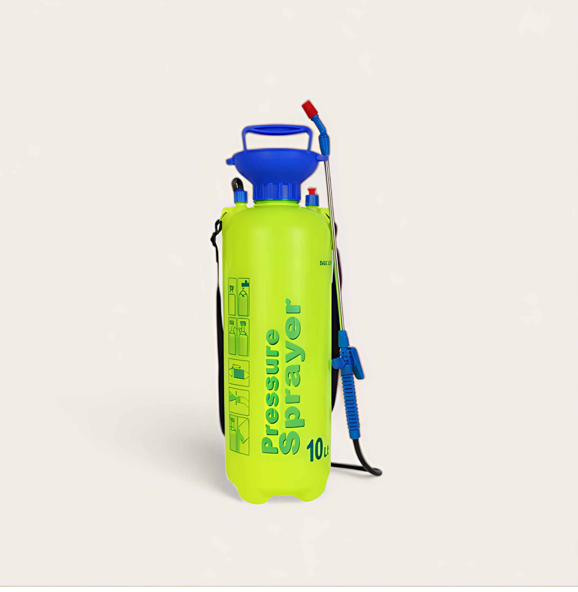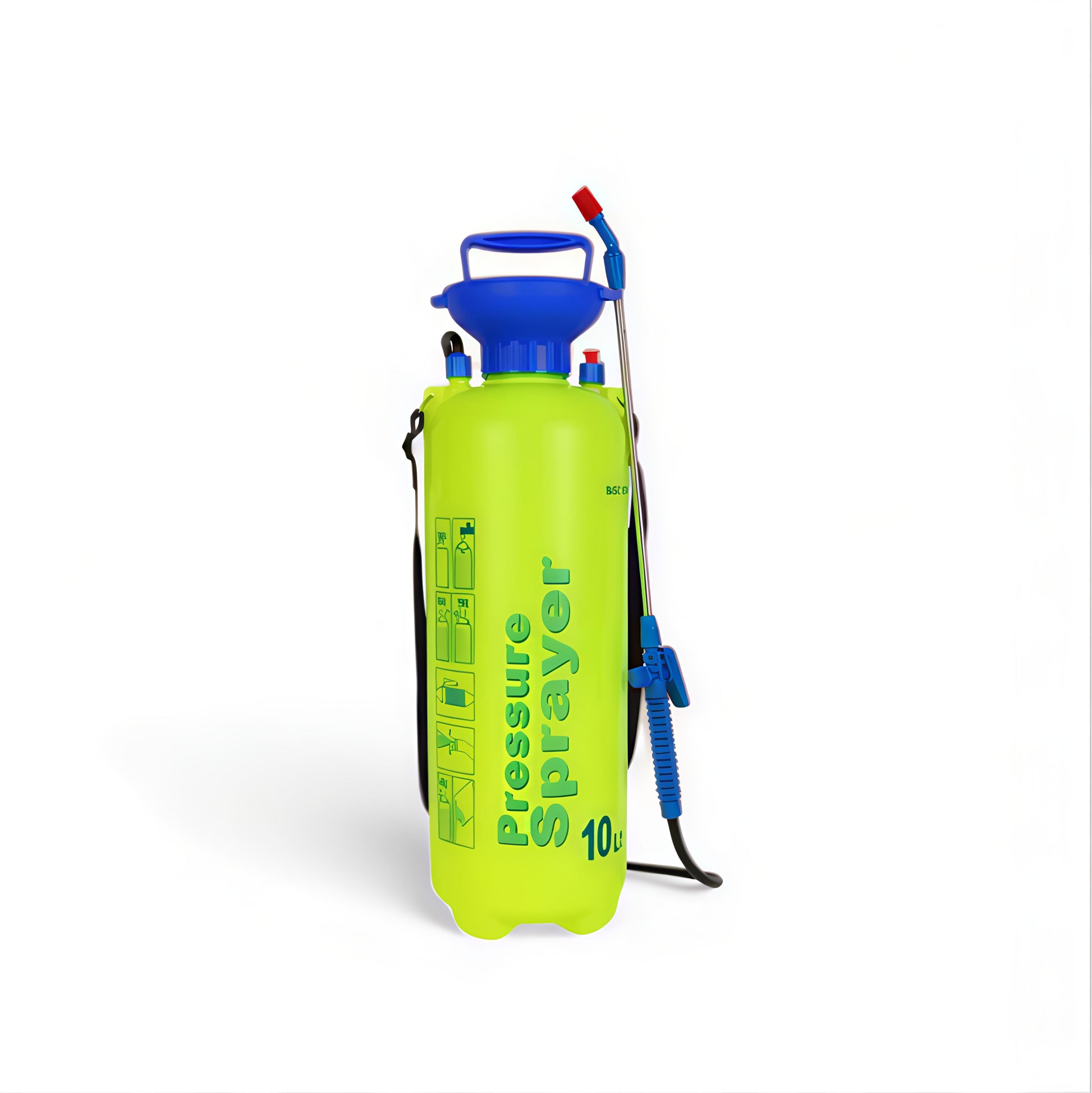 رشاشة ضغط يدوي بسعه 10لتر , مصممة لتسهل عمليات الرش في الحدائق والمزارع والمنازل تتميز بخزان قوي وخفيف الوزن مع مؤشر قياس السعه لسهولة متابعة مستوي السائل . مزودة بخطوم مرن وعصا رش معدنية مع فوهة قابلة للتعديل للتحكم في نمط الرش . مناسبة للاستخدام مع المياه المبيدات الحشرية , الأسمدة السائلة , والمنظفات